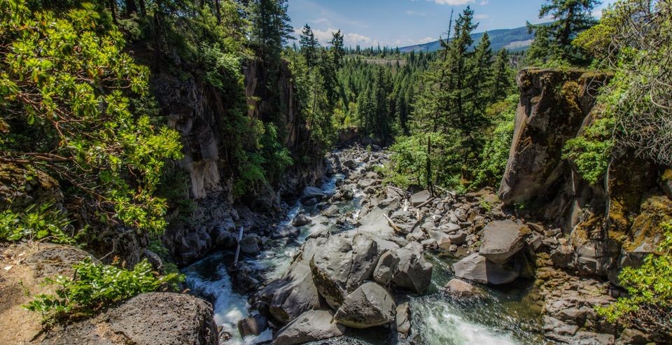 You may have traveled by the little town of Prospect on your way to Crater Lake. The Prospect State Scenic Viewpoint offers a 2-for-1 show with Mill Creek Falls (173 ft) and Bar Creek Falls (240 ft) only a quarter mile apart. Both towering falls are visible from across the Rogue River Canyon at the edge of a steep gorge. Take Highway 62 from Medford towards Crater Lake. Take a right on Mill Creek Road and follow the signs to the parking area and trailhead. The falls are slightly less than half a mile down the trail.